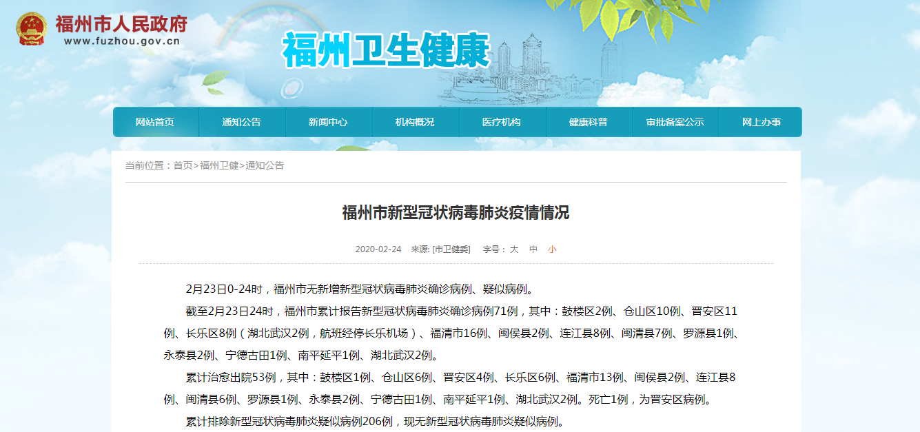 最新!福州23日无新增新冠肺炎确诊病例、疑似病例