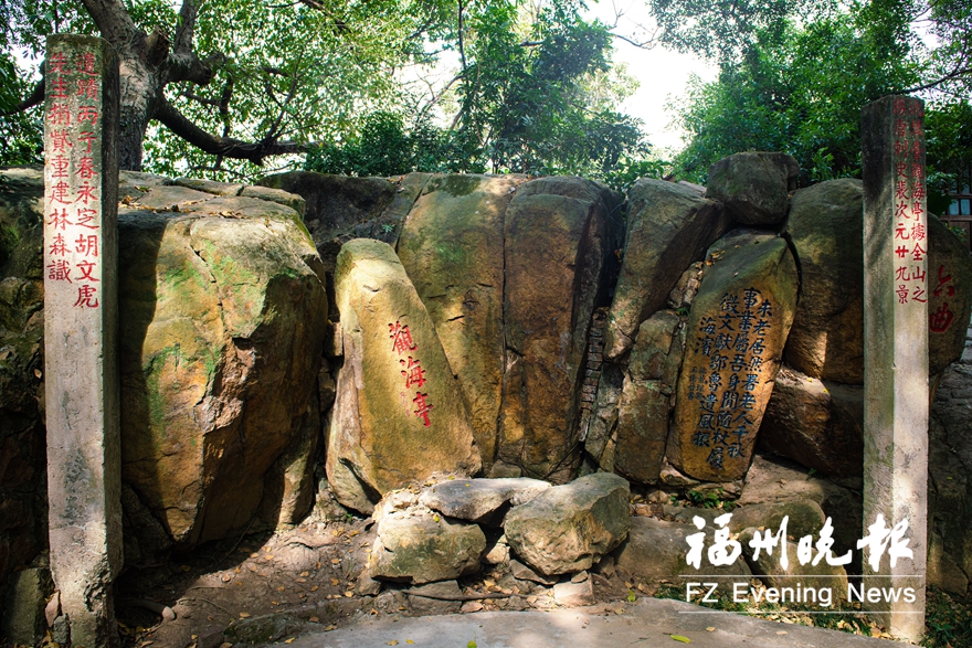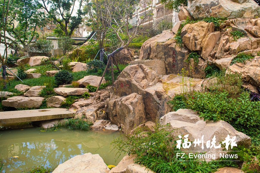 冶山顶的摩崖石刻上刻着“观海亭”三个字,这也是观海亭的所在地。 “有人导我游故宅,池水一泓清且漪。小径屈曲寂无鸟,春风乱开白辛夷。”清光绪年间秀才施景琛的诗作中,这一名叫“辛夷池”的池塘也被考证到。 在冶山南麓提升中,设计团队恢复了天泉池和辛夷塘,提升山石和绿化,梳理题刻内容,打造出冶山春秋园里古今结合的新景点。