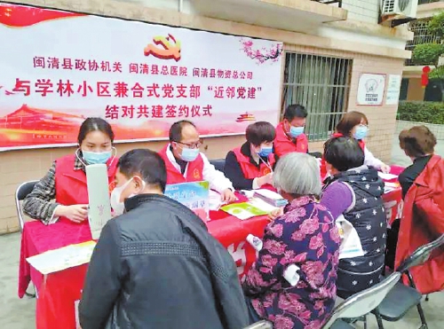 • 闽清县总医院组织党员志愿者不定期走进结对小区,为居民讲解健康科普知识,并现场答疑解惑;实验中学党支部开展进社区结对共建志愿服务活动,由党员教师向家长介绍与孩子沟通的技巧,解答家长在家庭教育中的困惑……