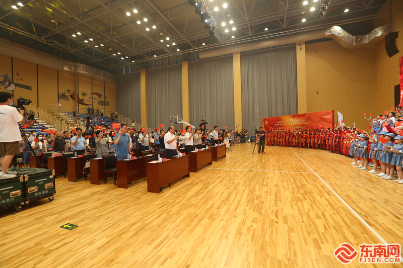 晚会现场 陈宇/摄 东南网讯 6月30日下午,福州高新区教育系统庆祝中国共产党成立100周年晚会“同心向党,喜庆百年”在南屿中学隆重举行。福州高新区领导林勉建、熊国华、魏志谋、陈其清、林松旺出席活动。