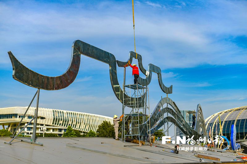 工作人员正在吊装园林小品。陈暖 摄 福州新闻网7月11日讯(福州日报记者 黄凌)第44届世界遗产大会即将在福州开幕,11日,主题为“闽都古厝文化承继 茉韵榕城喜迎世遗”的园林小品在海峡国际会展中心开始吊装,将于世遗大会前精彩亮相。 该园林小品由福建古厝标志性的马鞍墙、“福”字、“中国篆刻”、海浪、飘带、茉莉花等元素以及代表着“红船精神”的红色月亮船及飘逸的彩带等组成,造型飘逸、律动,色彩鲜艳、明亮。 “红色月亮船代表中国共产党的‘母亲船’,背景的4条飘带代表福州的乌山、于山、屏山和鼓山,蓝色的波浪代表福州的母亲河——闽江,造景上方的马鞍墙是以三坊七巷的建筑轮廓为原型,与古韵满满的会徽相呼应,表达福州人民持续推进历史文化遗产保护的优良传统。浪花造型上还点缀了象征友谊的茉莉花,代表着热情好客的福州人民对此次世遗大会来客的尊敬与友好。”现场园林造景施工负责人林国平说。 除了园林小品凸显福州文化特色,海峡国际会展中心周边的绿化带也全面更新,中心环岛处种植佛甲草、山丹花、三角梅,水池草坪新种红、黄混色月季花,周边渠化岛种植凤仙、孔雀草、海棠花,下穿通道的栏杆悬挂粉色欧石竹,一个花园般的会展中心即将全面亮相。 |
