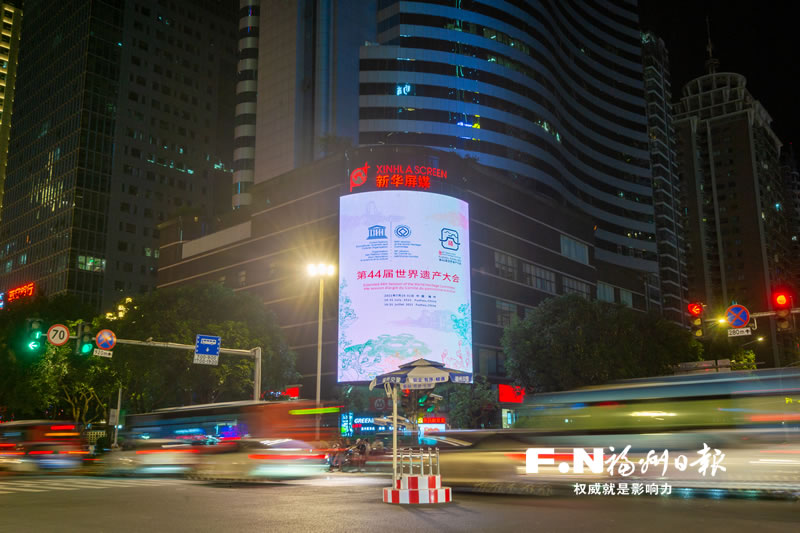 12日晚,福州置地广场和东二环泰禾广场的户外大型LED屏幕点亮第44届世界遗产大会主题海报。据悉,世遗大会前夕,我市50多面户外大型LED都在进行最后调试,将在大会期间统一播放主题宣传画面,共同营造浓厚的大会氛围。(福州日报记者 黄凌 邹家骅 摄影报道) |