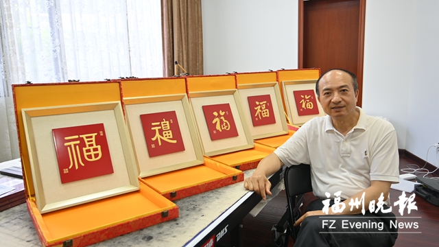 陈吉和他书写的五福。受访者供图 福州晚报记者 陈丹 第44届世界遗产大会今天在福州开幕,这是我国在文化和自然遗产保护领域承办的最高规格的国际会议。 作为东道主,福州为各国宾客准备了一份特别的礼物——一套带有满满“福”气的大漆书法作品《有福之州,有福同享》。 这套作品是世界级非物质文化遗产中国书法与国家级非物质文化遗产福州漆艺的一次跨界融合,由著名书法家、非遗传承人、青年学生共同制作完成,寄寓着中国和福州对世界的美好祝福。 五福“漆书”祝福世界 《有福之州,有福同享》由5个“福”字组成,分别用篆、隶、草、楷、行5种书法字体书写。 作品创意来源于第44届世界遗产大会会徽“福”元素,以中国书法与福州脱胎漆器髹饰技艺的跨界融合,突出展示中华文化遗产的博大精深、数千年文化积淀的厚重与魅力,同时展现出福建福州是历史文化遗产的人间福地,福泽天下、州秀古今。 这套作品分为5幅字,每一幅长、宽均为26厘米,用福州漆艺制作:金色的“福”字配上耀眼的红色大漆,既有典型的中国文化特色,又体现了高超的大漆工艺水平,也符合当代审美时尚。 作品装在“福州蓝”礼盒内,每一件作品都附有收藏证书,用中英文双语翻译,方便各国来宾理解“福”文化和书法、漆艺艺术。作品还运用了新的知识产权保护手段量子云码,实现可溯源、可追踪。 据介绍,该作品是中国非物质文化遗产保护协会副会长、中国艺术研究院中国书法院研究员、著名书法家陈吉和福州致道漆器文化艺术有限公司、闽江学院致道国际漆艺学院学生共同创作的。 其中,5个“福”字由陈吉先生书写。五个“福”字寓意中国五福临门,“福”又代表福建和福州。陈吉说:“幸福是世界各国人民共同的追求,福州是有福之州,福州人是有福之人,所以我们应该有福同享,以‘福’献礼祝福世界。” 制作工序几十道 这套作品虽然只有5个字,但因运用了福州脱胎漆器髹饰技艺,制作流程有几十道工序,需历时3个月之久。 “光是‘福’字画板地底工序就有十几道流程,还要经落粉、定稿、堆漆、贴金等技法加以装饰。”致道漆器品牌创办人、福建省知识产权协会会长俞新介绍,整套作品运用了多种福州脱胎漆器髹饰技艺手法,完美复制了陈吉先生手书的字体,每一笔的线条、饱满度、色泽都十分灵动、安详、有力。 “我们的工艺导师林舒是福州脱胎漆器髹饰技艺代表性传承人。非遗传承人和学生共同创作,进行一对一指导,产教融合。我想,这便是对非遗的最好传承,是非遗人才培养路径的有益尝试。”俞新表示。 “中国传统书法与福州漆艺跨界融合,令流动的书法线条呈现出一种厚重之美。大漆的材质工艺与书法的线条造型互相加持,也高度契合非遗‘见人见物见生活’的理念。”陈吉介绍,整套作品不是高高在上的个性呈现,而是与百姓生活息息相关,体现百姓的情感,希望这样的作品能给各国嘉宾带去满满的祝福。 |
