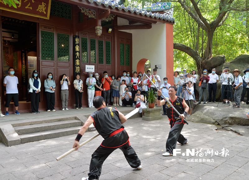 2021-07-27 06:59:56 来源:福州日报 责任编辑:蔡秀明 作者:李白蕾世遗大会嘉宾欣赏武术表演。记者 郑帅 摄 福州新闻网7月26日讯(福州日报记者 李白蕾)26日上午,参加第44届世界遗产大会的嘉宾来到于山风景名胜公园参观考察。聆听着戚继光抗击倭寇的故事,欣赏着非遗项目自然门武术和香店拳表演,刀光剑影中仿佛看到当年戚公领兵作战的神威,爱国之情油然而生。 嘉宾首先来到于山戚公祠,拾级而上,没走几步便听到一阵“吼哈、吼哈”的习武声。戚公祠厅门口的空地上,拳、剑、刀、棍表演轮番上阵,传承人轻盈矫健的身姿和刚劲有力的招式赢得嘉宾阵阵喝彩。“这是福建省非遗项目——自然门武术表演。一会进展厅,大家也会看到好多戚家军当年作战的兵器展示,可能有些会觉得眼熟,刚刚在武术表演中你们就见过呢。”讲解员说。 武术表演中,一名小女孩一招一式有板有眼、引人注目。“我叫傅琬棋,是温泉小学二年级学生,习武3年了。我很喜欢自然门这个非遗项目,既能强身健体,又能了解中华传统文化。”小女孩说。 由于戚公祠供奉着击败倭寇的民族英雄戚继光,上世纪30年代侵华日军对于山也退避三舍,因此这里成了抗日战争时期爱国人士聚集的一个安全之处。讲述福建抗日历史的“福建事变”展厅便位于这里。记者看到,来自中国古迹遗址保护协会的付梓杰认真地边听边看,还不时拿出小本子记录,“这是我第一次来福州,之前在习总书记作的《〈福州古厝〉序》里读到戚公祠,今天来实地一看,果然古建筑保护得特别好。通过这些‘会说话’的古建筑,让我们的爱国情怀再次被点燃。我还发现,不管是文物保护专业人士还是普通游客,对古建筑都心存敬畏之心。有这样的氛围,福州才会有这么多古厝被保护下来”。 于山除了有戚公祠,还有万象亭、炼丹井、状元峰等景点,每一处都有历史名人的传说。在涵碧亭,闽剧经典剧目《荔枝换绛桃》片段正在上演;在状元峰下,非遗活态展示正在举行……北大学子陈雪琦一边好奇地体验古法制作的茉莉花膏,一边认真比较起香店拳和自然门武术招式的不同,不时和同行的小伙伴讨论。“这次我是第二次来福州了,上次是来参加乡村振兴方面的社会实践。我学的是城乡规划,比较关注福州的建筑设计。这次我走访了三坊七巷、镇海楼、烟台山、于山,每到一处我都会认真研究古建筑的风格。福州的文化底蕴很深厚,像于山虽然面积不大,但故事很多。丰富的人文景点加上不时穿插的非遗活态展示,让我们目不暇接、收获颇丰。”陈雪琦说。 |