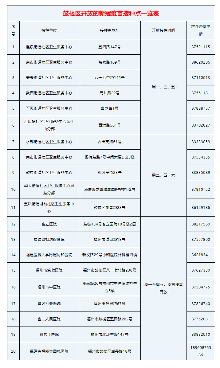 即日起,12周岁以上人群可就近前往以下接种点接种新冠疫苗。各校可通知12周岁以上学生按规定预约并前往接种。