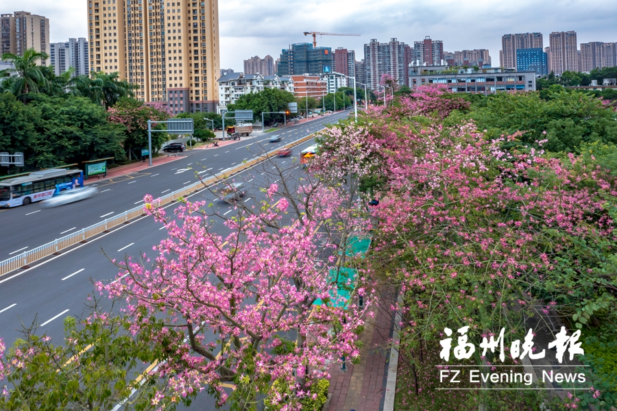 福飞路上的美人树。 福州新闻网10月25日讯(福州晚报记者 陈丹/文 陈暖/摄)福州的秋天是什么颜色?美人树说,福州的秋天,是浪漫的粉红色;树中“谦谦君子”栾树则说,秋在枝头栾树花。 福飞路的“浪漫粉”,无疑是福州秋日里最亮丽的风景之一。作为福州种植美人树的重要道路之一,眼下,福飞路进入一年中最绚丽的时期。一眼望去,满树繁花宛如粉色云霞。不少人来到这里,欣赏秋日这抹迷人的粉色。 美人树,学名美丽异木棉,从每年的夏末到冬季,花期不断。美人树遮阳效果极好,还有很强的吸附有害浮尘和化解二氧化硫的能力,是优良的城市绿化树种。 据悉,除了福飞路,远洋路、鹤林路、国货东路、南江滨东大道等处均大面积种植美人树。光明港公园、晋安河公园等一些公园内的美人树也进入了盛花期。 |