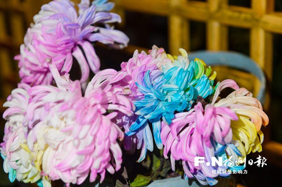 “七彩菊花”亮相西湖菊展 专家:染色而成,并非天然品种