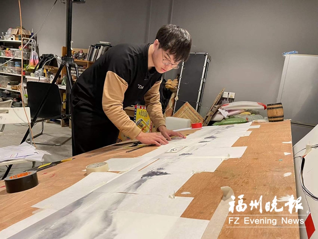 甄强正在作画。 受访者供图 福州晚报记者 安梓/文 受访者供图 近日,一部为冬奥助威的水墨风格翻纸动画短片《破茧》,登上人民日报客户端。记者前日采访了该片的主创之一,闽江学院美术学院2019级环境设计专业学生甄强。 《破茧》共使用了2000张A4宣纸,1200张水墨原画手稿,通过528小时的日夜奋战,手翻1500次,定格拍摄3000次才得以呈现。 甄强说:“团队就两个人,我俩从接到项目起奋战了一个多月,几乎每天都忙到凌晨两三点。” 翻纸动画利用了人眼的视觉暂留原理,将一张张逐渐变化并能清楚反映一个连续动态过程的静止画面,经过摄像机逐张逐帧拍摄编辑而成。