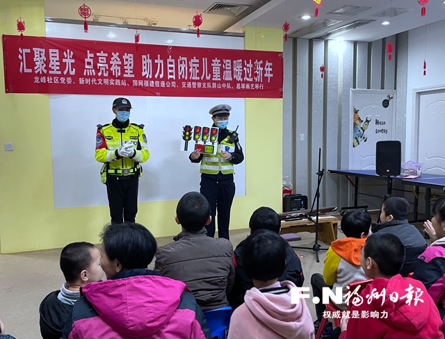 福州新闻网1月20日讯(福州日报记者 林榕昇 摄)18日上午,鼓楼区龙峰社区联合共建单位,在小百灵儿童训练中心开展关爱自闭症暖冬行动,走近“星星的孩子”,为20余位自闭症儿童送去新春祝福。 古琴演奏《日暮云林》拉开活动序幕,轻柔舒缓的琴声抚平了孩子们不安的情绪。随后,市公安局交警支队屏山中队党员志愿者为“星孩”上起文明交通趣味宣讲课,通过提问互动,拉近与孩子们的距离。参加活动的国网福建信通公司为孩子们带来牛奶、玩具等爱心物资,送上节日祝福。 |