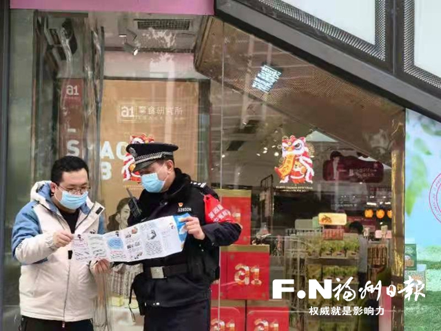 新春佳节,台江公安分局瀛洲派出所民警深入辖区商贸街区开展反诈、防盗、流动人口管理等法律宣传工作,切实有效维护辖区的安定稳定。(记者 颜澜萍 通讯员 官文海 摄影报道)