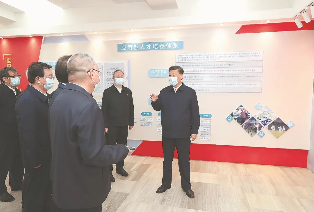 2021年3月22日至25日,中共中央总书记、国家主席、中央军委主席习近平在福建考察。这是25日上午,习近平在福州闽江学院,参观校史和应用型办学成果展示。新华社记者 王晔 摄