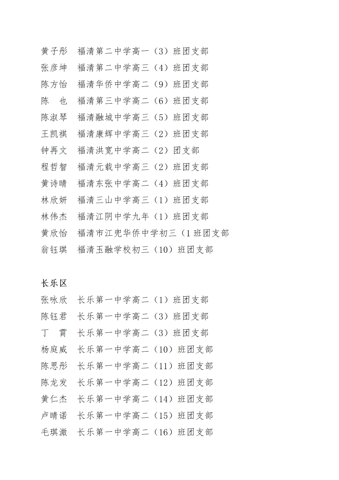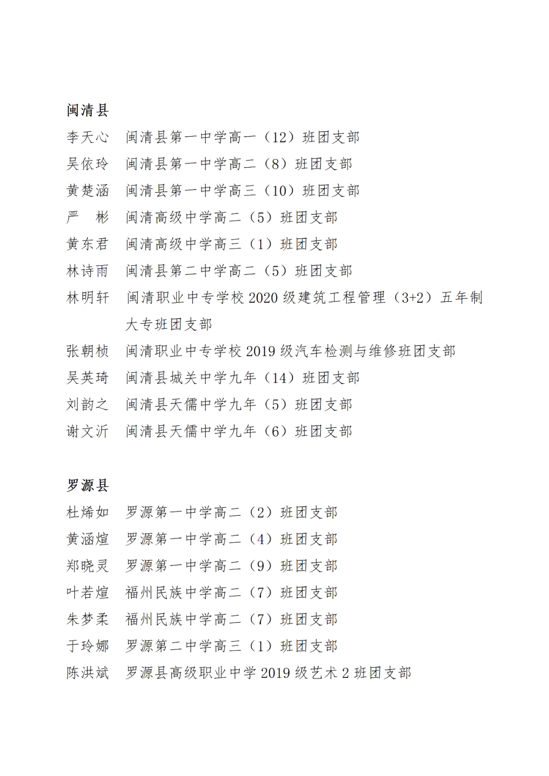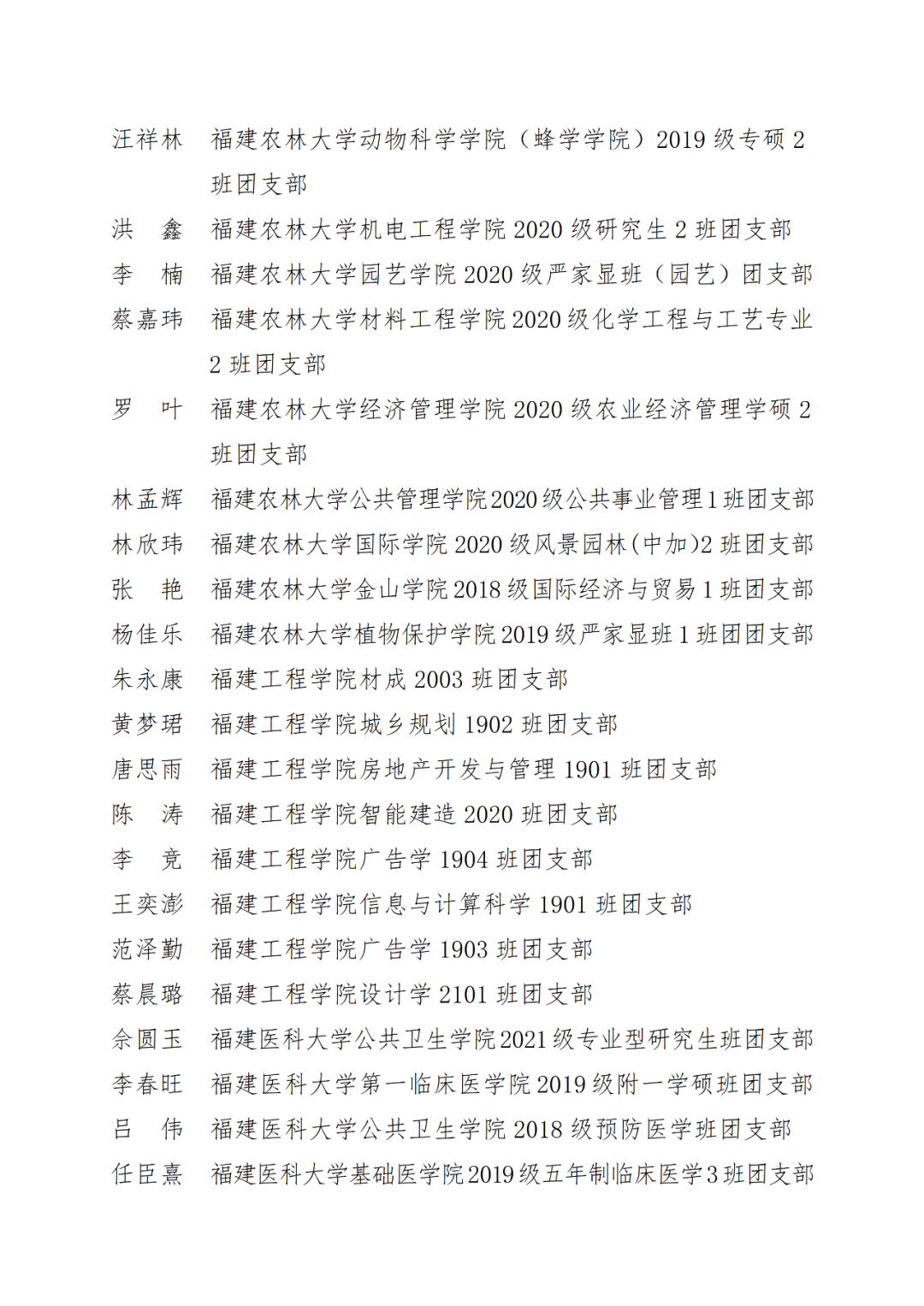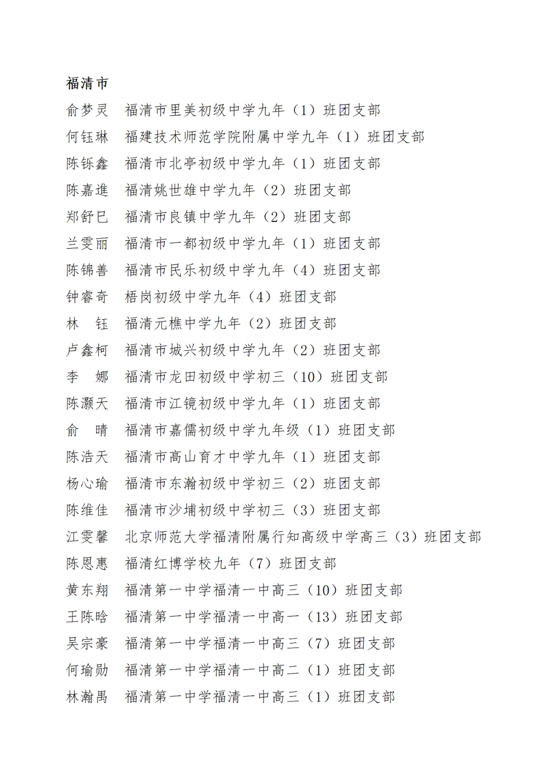 青春心向党,建功新时代! 福州市2021年度“优秀学生共青团员”“优秀学生共青团干部”评选结果正式揭晓! 2021年以来,全市广大在校团员青年深入贯彻落实习近平新时代中国特色社会主义思想,坚持和弘扬“3820”战略工程思想精髓,在助力福州高质量发展超越,加快建设现代化国际城市的火热实践中取得了积极成效,涌现出一批先进典型。经研究,拟对郑晰涵等474名福州市“优秀学生共青团员”、柯宇潞等272名福州市“优秀学生共青团干部”予以通报表扬。 希望受到表扬的学生团员、团干珍惜荣誉,再接再厉。全市各学校团员、团干部要以先进典型为榜样,开拓创新,锐意进取,助力福州全方位高质量发展超越,在加快建设现代化国际城市的火热实践中贡献青春力量。 福州市2021年度“优秀学生共青团员”