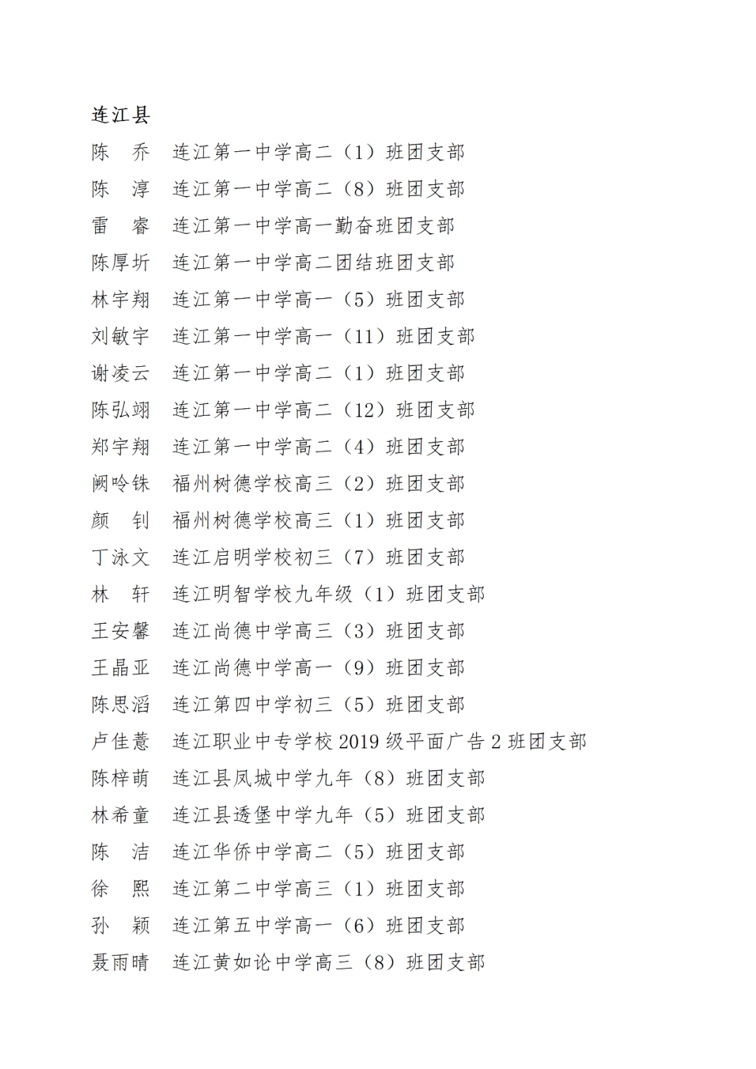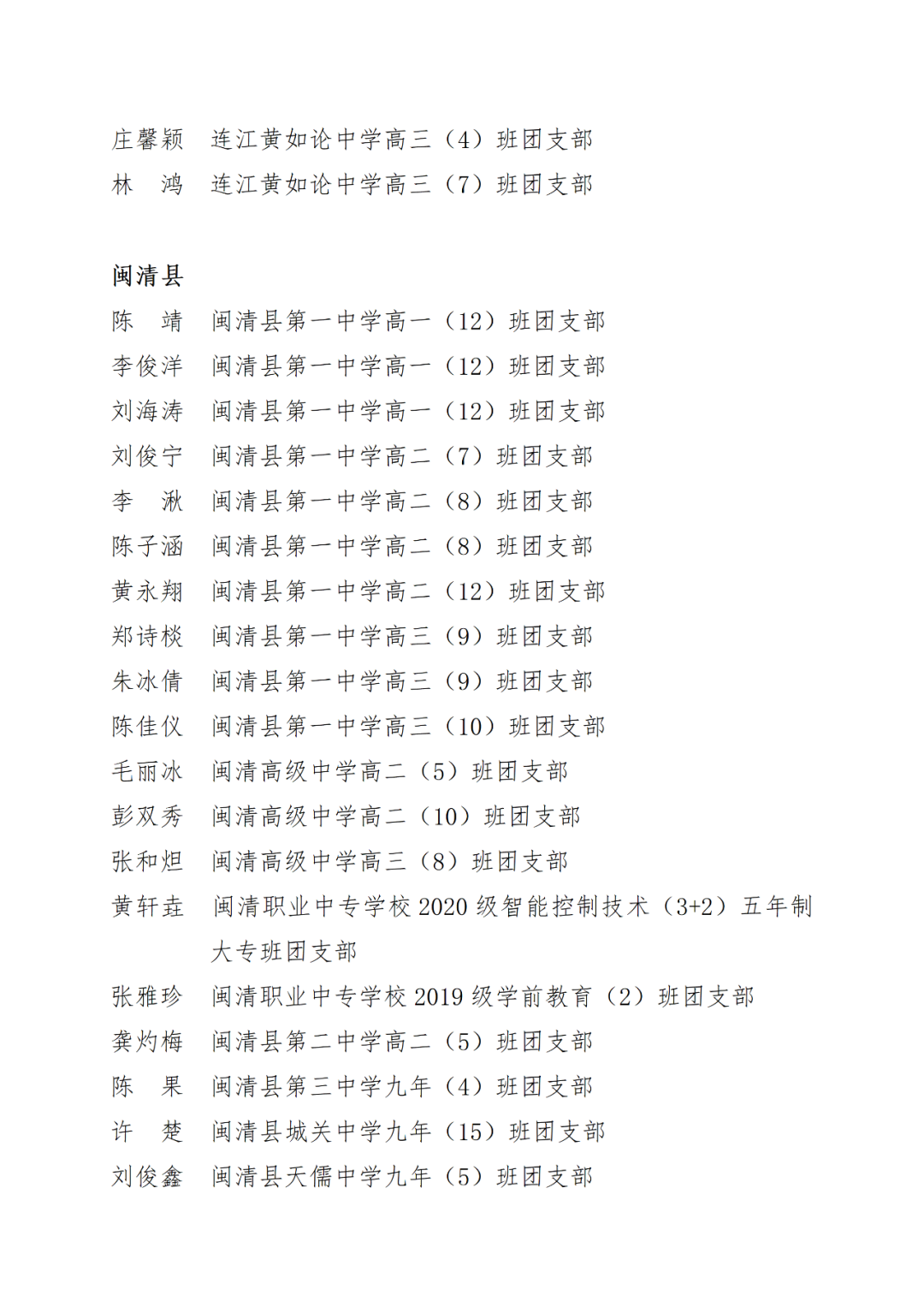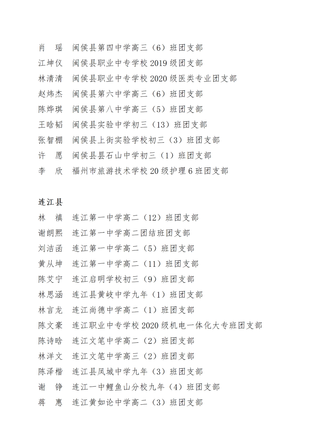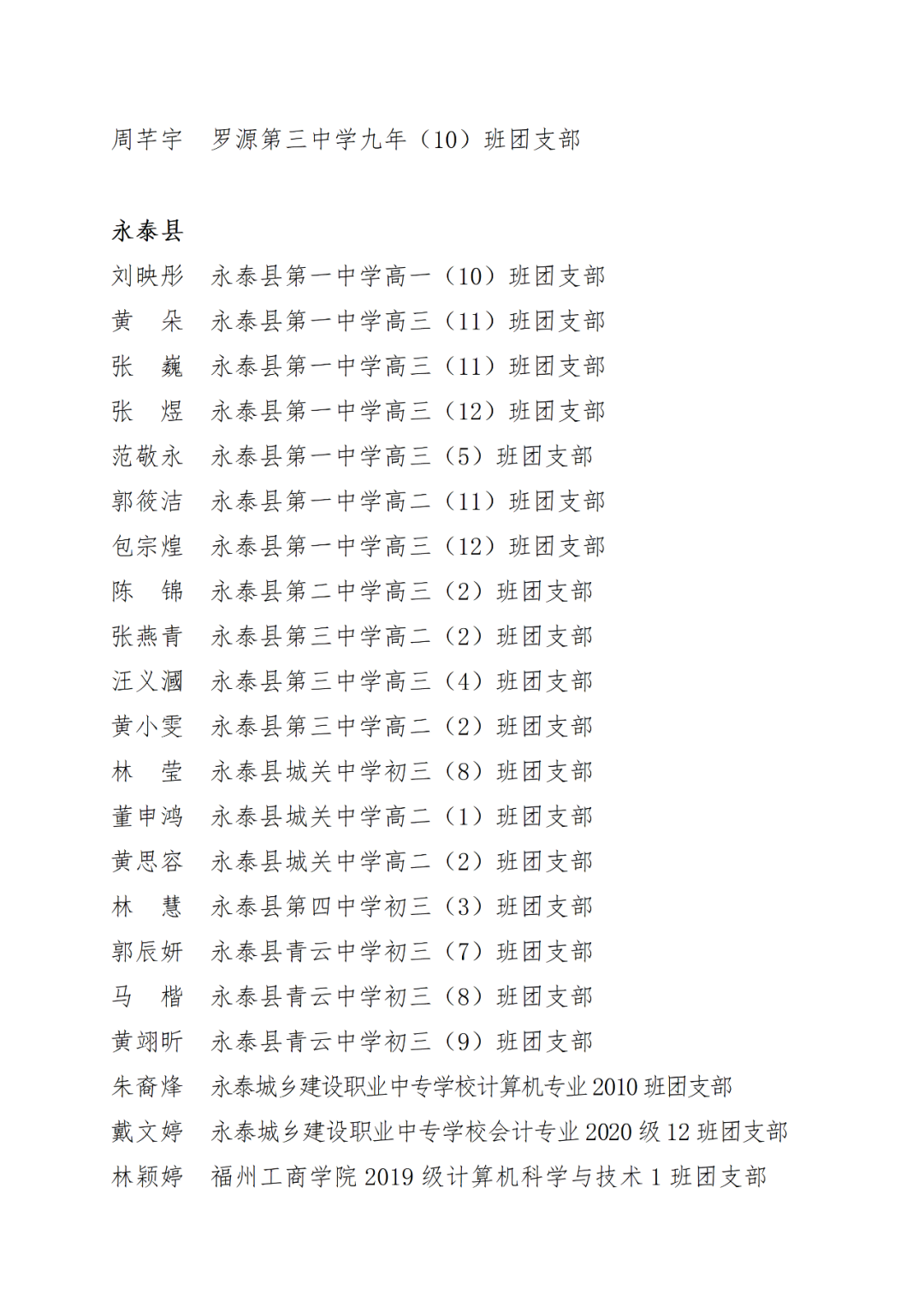 青春心向党,建功新时代! 福州市2021年度“优秀学生共青团员”“优秀学生共青团干部”评选结果正式揭晓! 2021年以来,全市广大在校团员青年深入贯彻落实习近平新时代中国特色社会主义思想,坚持和弘扬“3820”战略工程思想精髓,在助力福州高质量发展超越,加快建设现代化国际城市的火热实践中取得了积极成效,涌现出一批先进典型。经研究,拟对郑晰涵等474名福州市“优秀学生共青团员”、柯宇潞等272名福州市“优秀学生共青团干部”予以通报表扬。 希望受到表扬的学生团员、团干珍惜荣誉,再接再厉。全市各学校团员、团干部要以先进典型为榜样,开拓创新,锐意进取,助力福州全方位高质量发展超越,在加快建设现代化国际城市的火热实践中贡献青春力量。 福州市2021年度“优秀学生共青团员”
