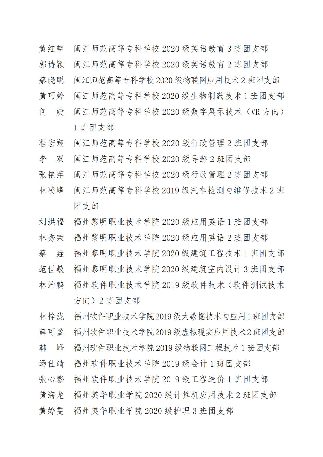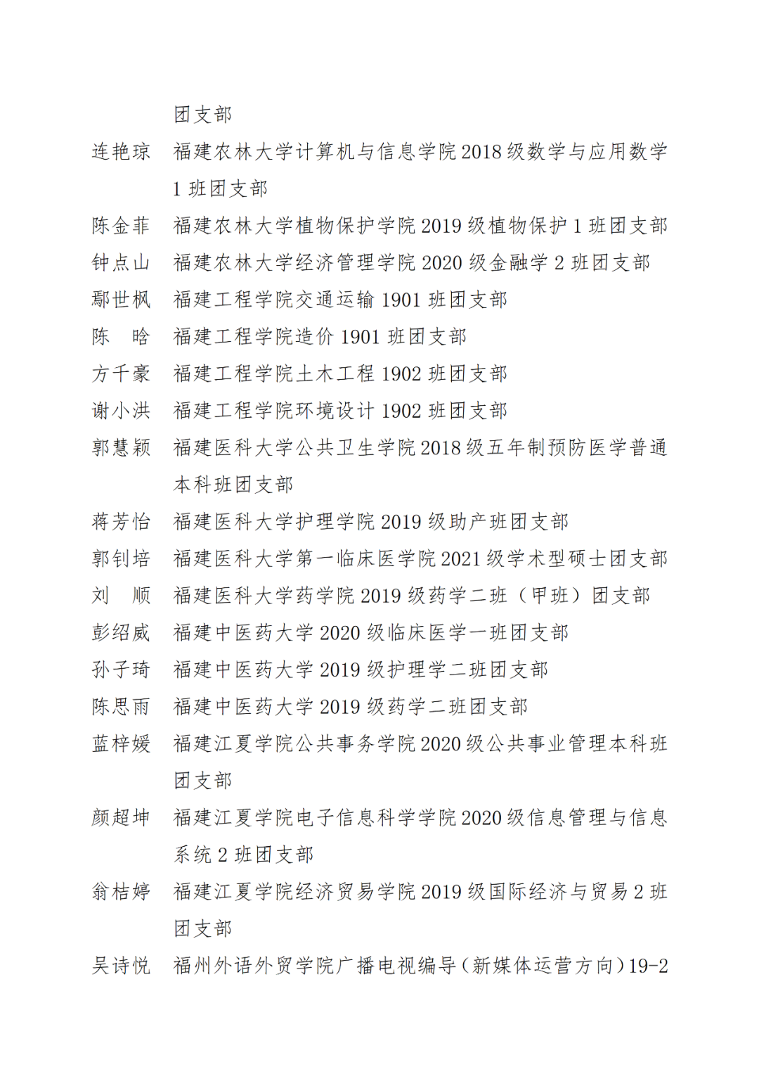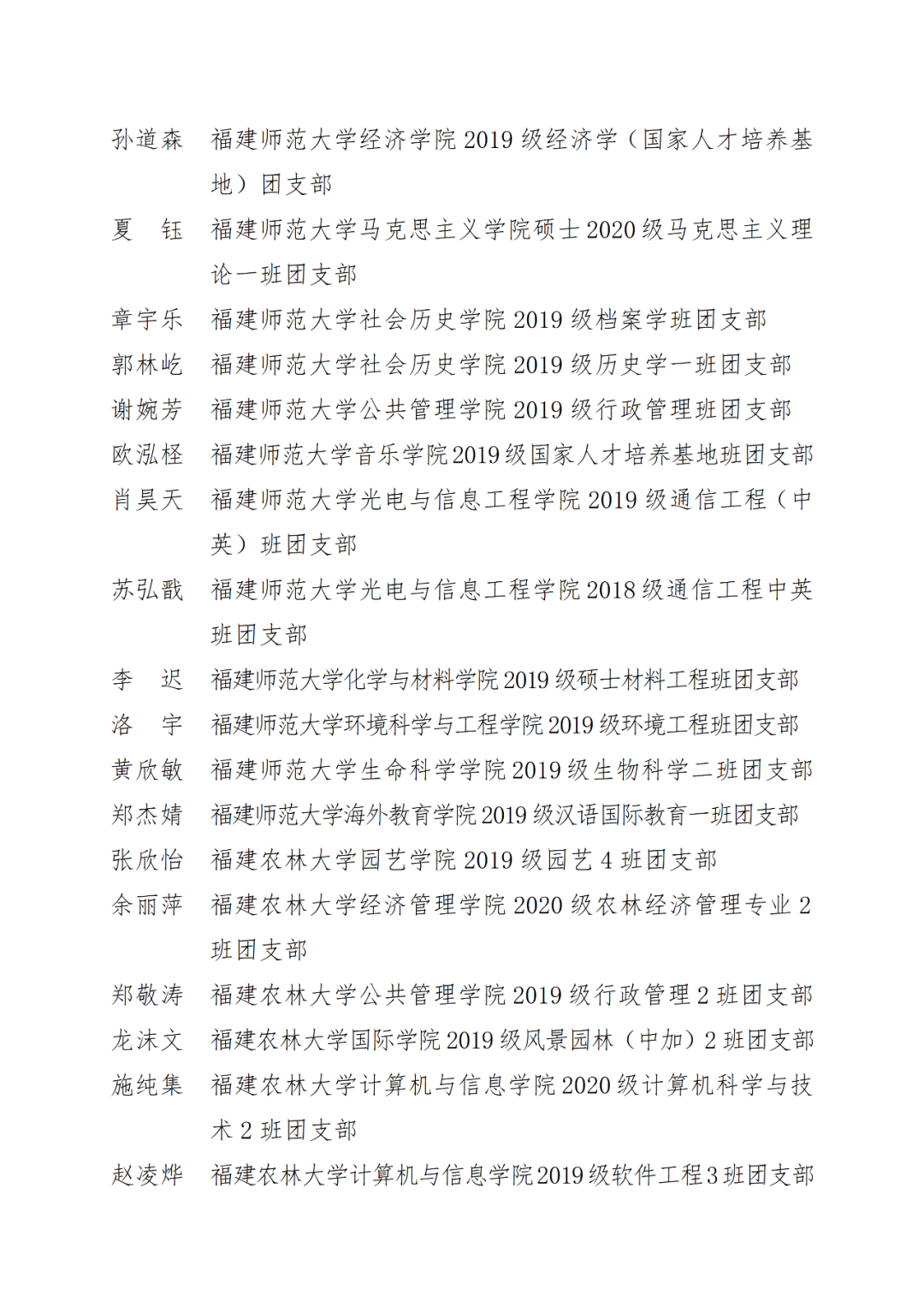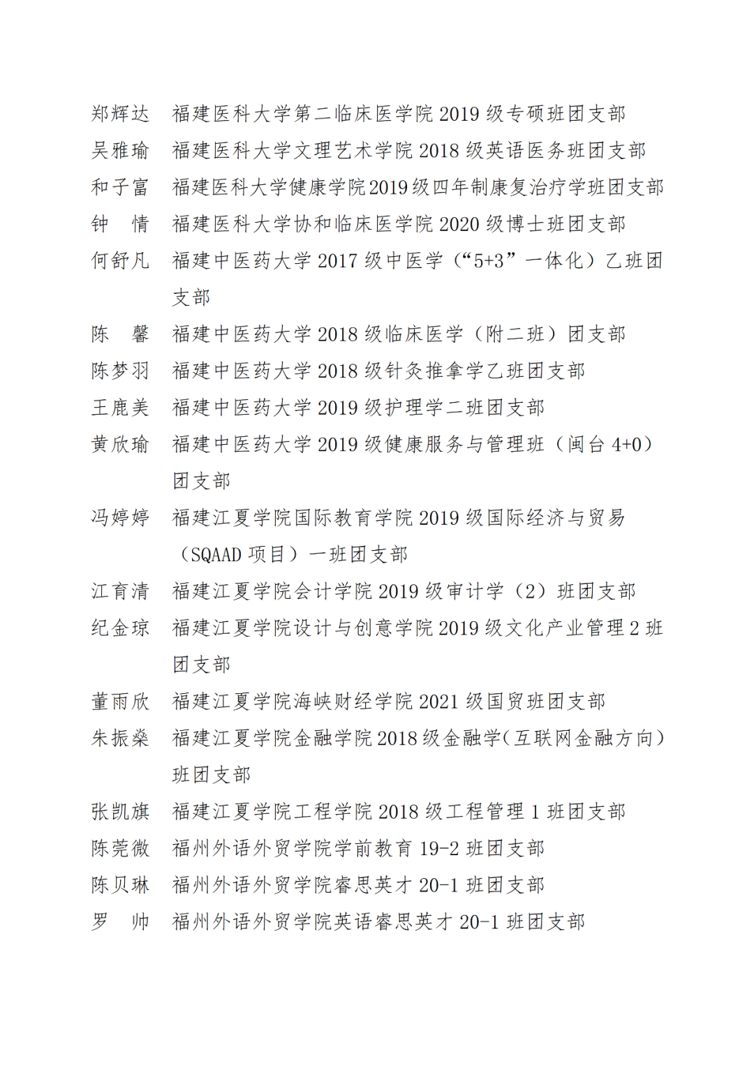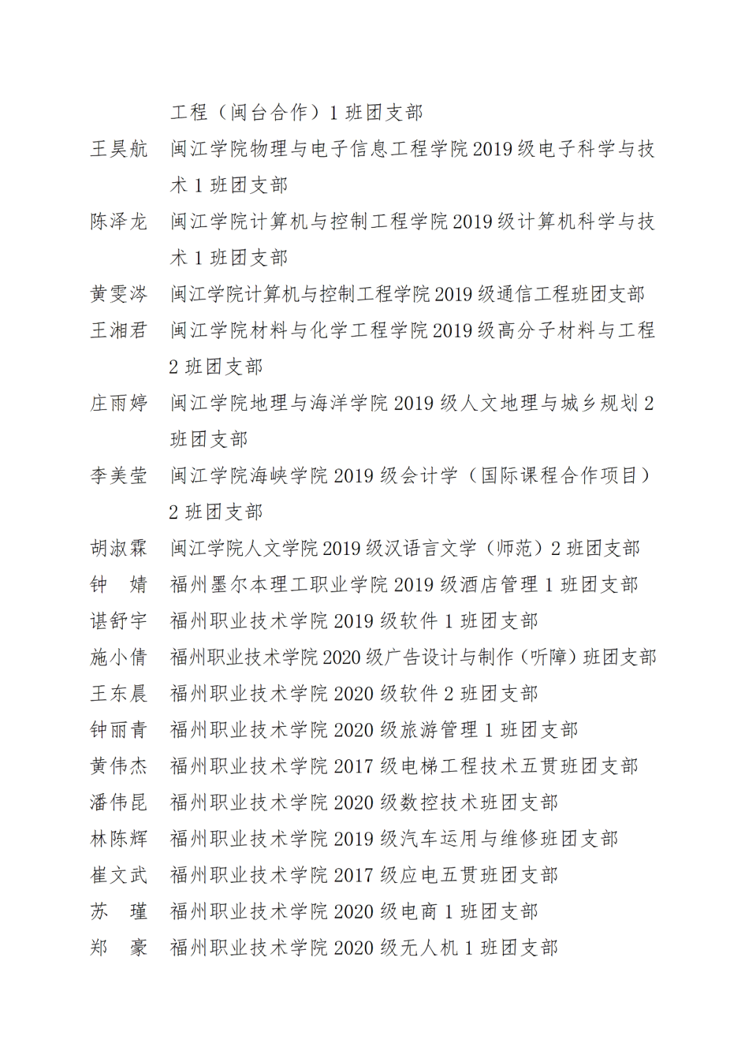 福州市2021年度“优秀学生共青团干部”