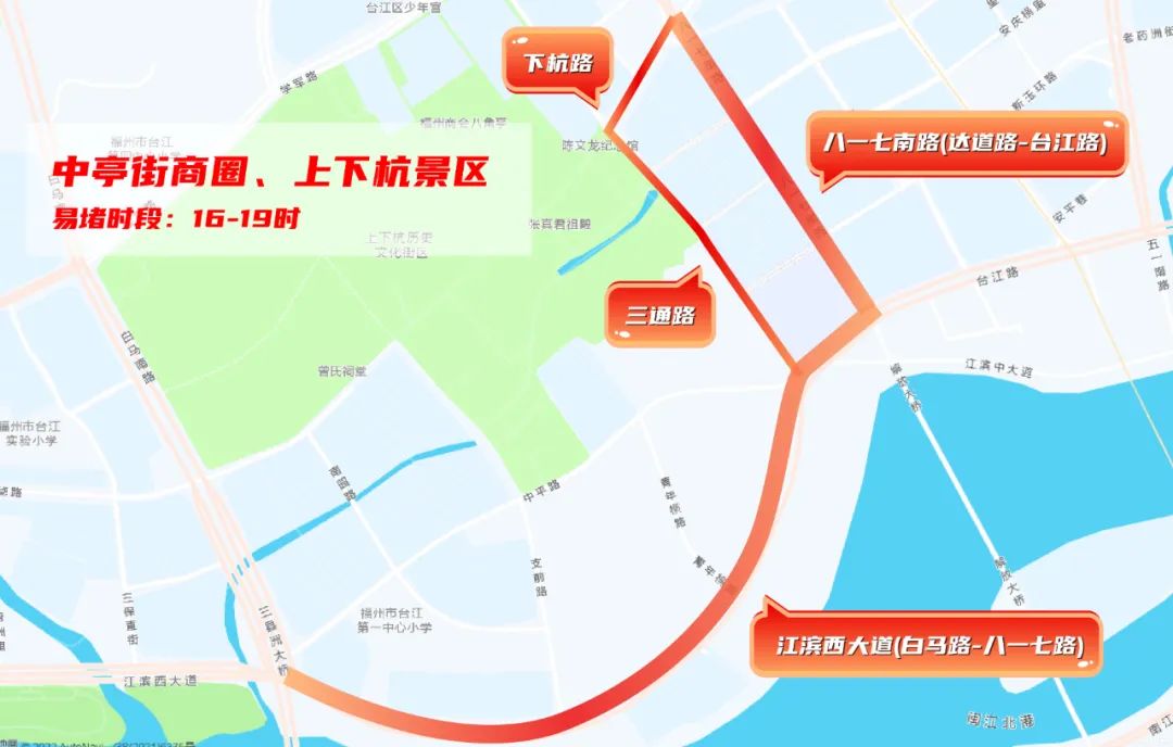 易堵路段为八一七路(达道路-台江路)、三通路、下杭路、江滨西大道(白马路-八一七路),易堵时段为16-19时,高峰通行速度预计为20公里/小时。 6