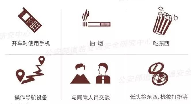 小伙分心驾驶追尾汽车、开车时分心驾驶,开车时常见的导致分心驾驶的行为有: