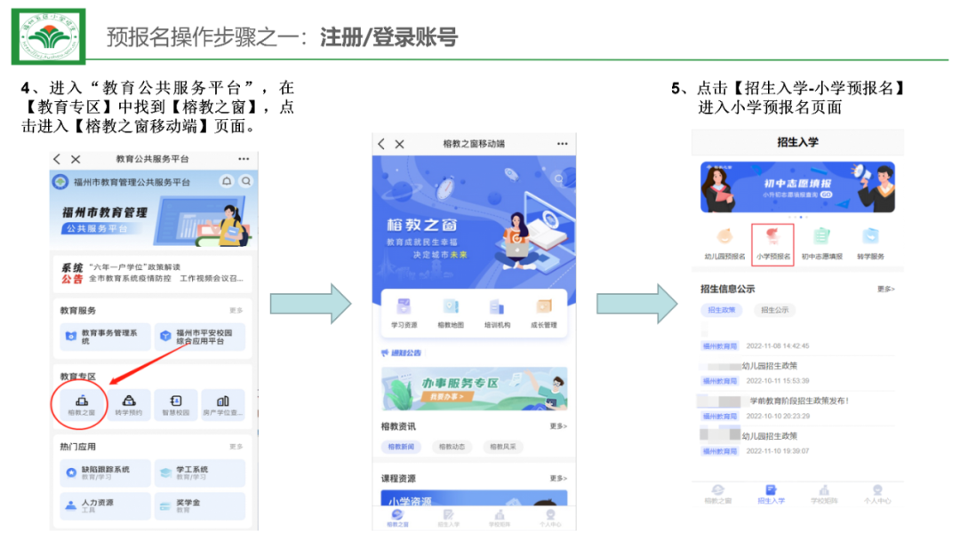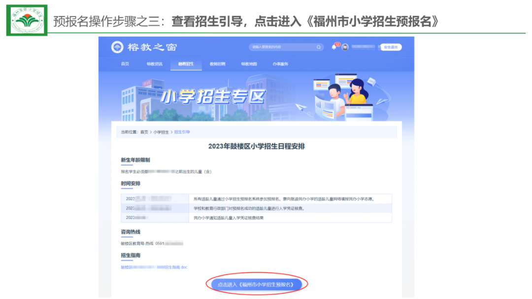 福州市教育局发布2023年小学预报名和初中招生家长操作指南,详情如下: “榕教之窗”系统小学预报名家长操作指南
