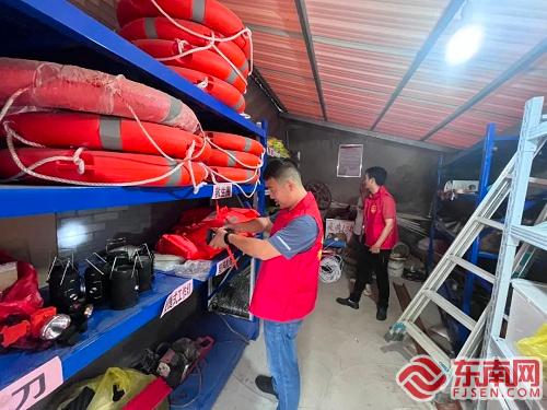 闽清县党员干部检查防汛物资。图源闽清县委组织部 闽清 闽清县迅速组建党员先锋队、青年突击队、巾帼志愿服务队等390支、组织党员志愿者7063多名投入防汛防台工作;117家县直机关单位党组织迅速集结在职党员干部进驻防抗台风第一线,协助挂钩帮扶村(社区)做好防范工作;67名第一书记、42名初任公务员“墩苗”干部就地转化为防汛防台风先锋队,带领驻点村干部对重点区域、重点部位等进行督察。全县292个村(社区)、997个网格党组织快速行动,270多名乡镇包村(社区)领导带队迅速下沉到各网格,与1596名村(社区)干部、1727名网格党组织书记(联络人)拉网式巡查,加大对山塘水库、在建工地、高陡边坡、地灾点、低洼地带等重点区域的排查力度,累计共巡查排查危险区域1907处,转移危险区域群众5856人,积极做好防台防汛措施。各党群服务中心、幸福养老院等化身“应急安置点”,提前做好防汛防台风物资和生活物资储备。
