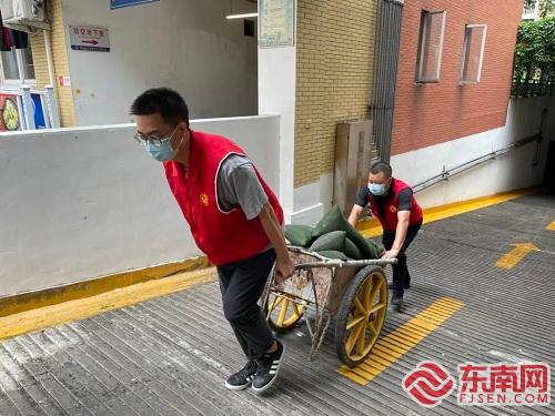 晋安区党员干部协助小区搬运防汛沙袋。图源晋安区融媒体中心 晋安 晋安区委组织部发出《关于在防汛防台风工作中充分发挥基层党组织和广大党员作用的通知》,启动战时集结,1017个小区网格党支部及网格志愿服务队、3600余名专兼职网格员、27名下派驻村第一书记、53名“基层治理服务团”成员迅速响应,第一时间组建起400余支应急先锋突击队。结合“区直部门包社区、机关干部进小区”工作机制,68家区直单位组织党员干部下沉包联社区,配合做好防汛防台风工作,共同筑牢守护人民生命财产安全的防线。利用党群服务中心、“近邻屋”“暖心驿站”等阵地,转移各类人员996人,全力以赴保障人民群众生命财产安全。