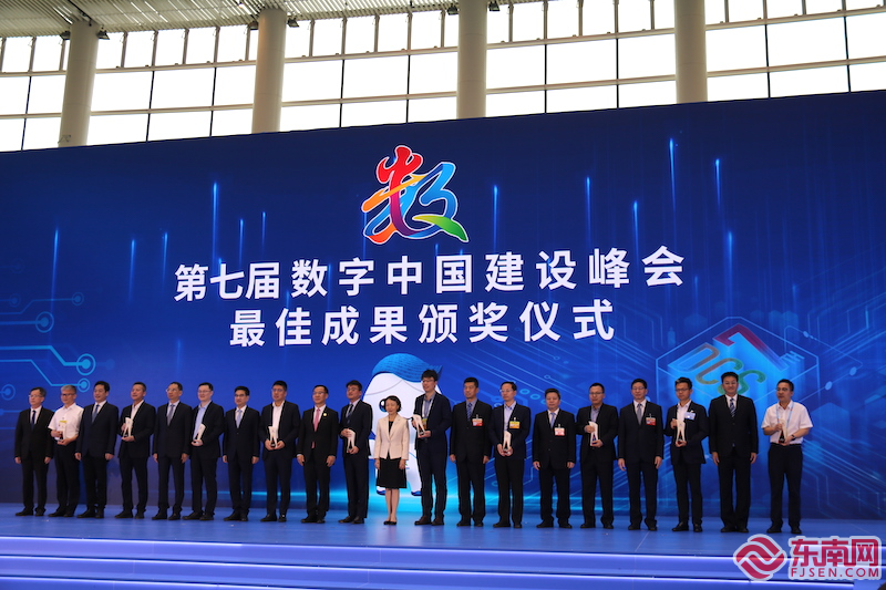 25日下午,第七届数字中国建设峰会最佳成果颁奖仪式在福州海峡国际会展中心举行。国家部委以及省市有关领导出席活动并颁奖。