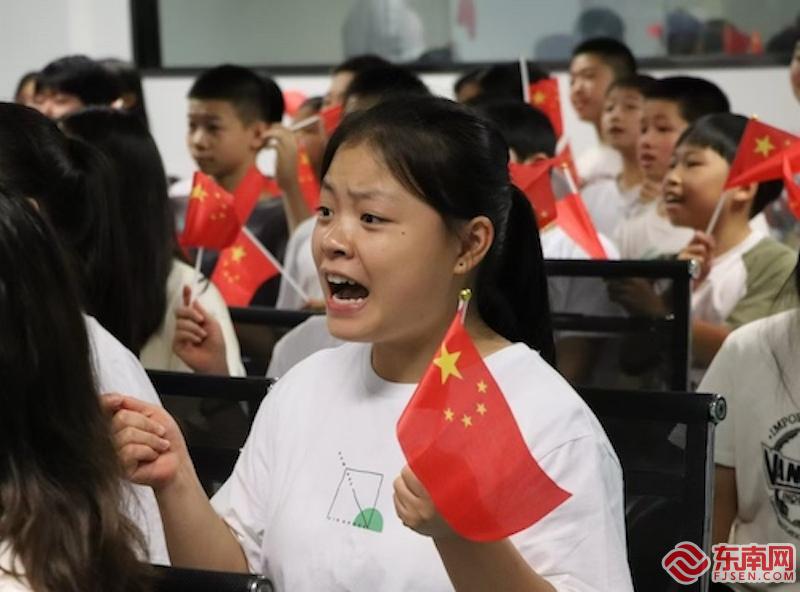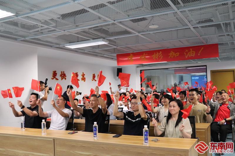 福州观赛现场气氛热烈。东南网记者陈巧玲 摄 福州市体育局组织福州市体育工作大队青少年运动员们集中观看比赛直播。观赛现场气氛热烈,大屏幕前,李发彬的每一次举重都牵动着每一个人的心弦,每一次成功都伴随着雷鸣般的掌声和欢呼。