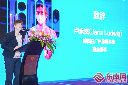 德国驻广州总领事馆副总领事卢永岚致辞。 推介会内容丰富,议题多样。德国联邦外贸与投资署驻华代表何若白先生就“投资德国”进行了深入讲解,为与会者提供了丰富的投资信息和建议。德国北威州国际商务署北京代表处、广州办事处首席代表封兴良先生以“立足北威,布局欧洲”为主题,详细介绍了北威州的投资环境和合作机会。福建省商务厅外经处副处长李倩对对外投资管理和支持政策进行了详细介绍。