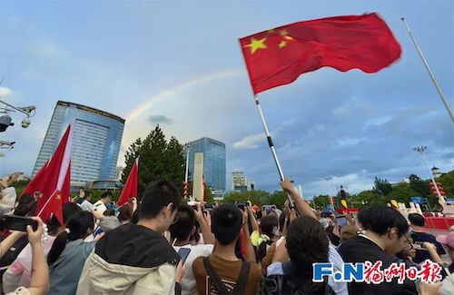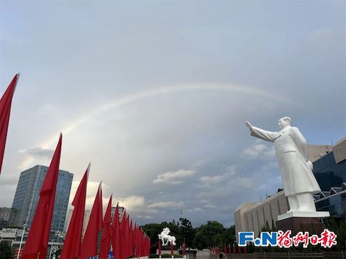福州的天空也给了最美好的回应——一抹绚丽的彩虹高高挂在于山堂上。