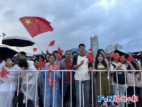 天空虽然飘着雨,也难掩大家的热情。 观旗群众的脸上洋溢着幸福和欢乐,写满了骄傲和自豪。