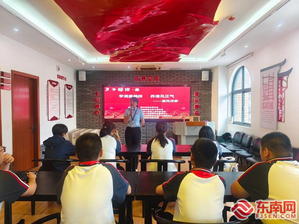 同学们踊跃发言。南街街道供图 接着,林华老师为大家讲述了禁毒先驱林则徐的传家宝青花瓷油灯和素炒豆腐的家风小故事。大家听得津津有味,郑孝煊同学说:“林则徐的家风清廉节俭,很值得我们学习,我们青少年应该传承和弘扬这些优秀的品质,为社会的进步和发展贡献自己的力量。” 随后,大家共同前往三坊七巷历史人物勤廉馆参观学习。林华老师介绍说:“三坊七巷历史人物勤廉馆主要收集提炼了以林则徐、王荷波为代表的若干位历史名人的勤廉事迹、格言警句等,展示了三坊七巷源远流长的清廉文化和思想。”