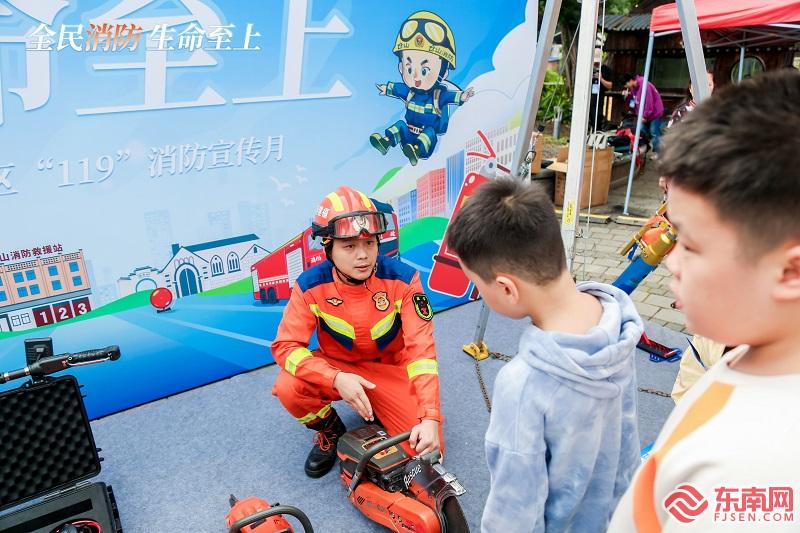 消防员讲解消防器具使用。仓山区融媒体中心供图 活动期间,在烟台山公园内还设置了多个体验互动项目,吸引了不少群众学习体验、打卡合影,通过“近距离观摩、沉浸式互动”,切实增强了广大市民群众消防安全意识。未来一个月内,烟台山商业漫步街区将在仓山区烟台山消防救援站、仓前路、亭下路等醒目位置,设置5个消防主题打卡点,开展“烟台山消防主题citywalk”活动,市民群众通过拍摄打卡,参与互动发布与“119消防宣传月”主题活动相关的短视频、图文等参与,赢取丰厚的奖品,持续提升群众对消防工作的关注度和参与度。