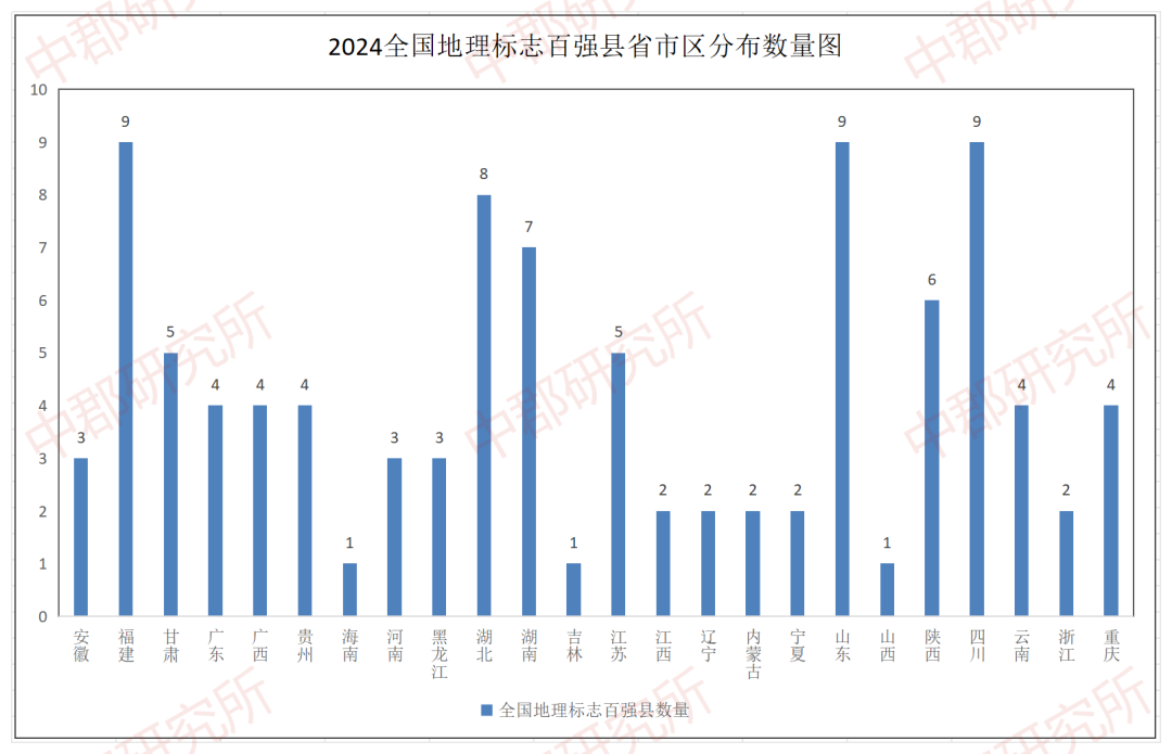 近日,全国县域经济和地理标志的专业研究机构——北京中郡经济发展研究所联合地理标志特产大全网,完成并发布了《2024全国县域地理标志产业高质量发展调研报告》,揭晓全国县域地理标志产业高质量发展综合指数百强县名单。 全国地理标志百强县分布在24个省市区,其中,福建德化县、福建安溪县、福建平和县、福建连城县、福建武夷山市、福建霞浦县、福建福鼎市、福建古田县、福建连江县上榜。完整名单如下: