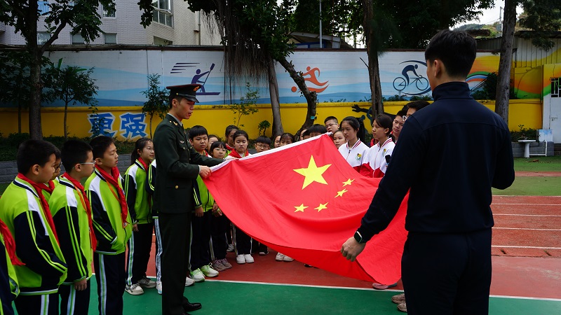 升旗训练教学。 “9·30”国家烈士纪念日,闽清县四套班子领导带头,全县干部群众广泛参加公祭烈士活动。在全民国防教育日前夕,组织开展了闽清县2024年下半年新兵入伍欢送大会暨闽清县全民国防教育月“爱我国防”主题教育实践活动,营造浓厚的国防教育氛围。