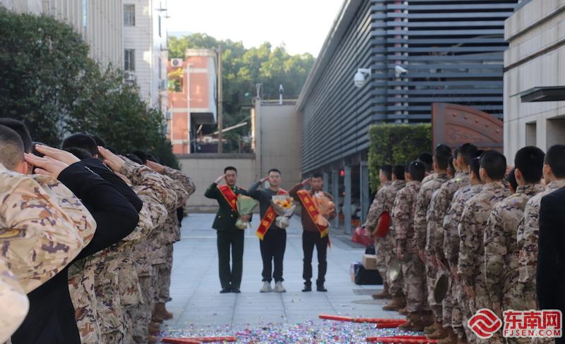 武警福建总队福州支队送别退伍老兵。金能政 摄