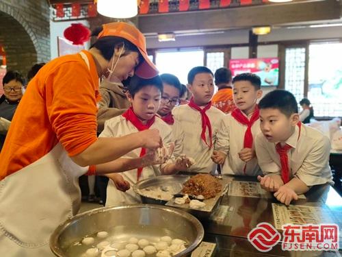 宣传画制作。南街街道供图 本次研学活动内容丰富多样,除了知识问答竞赛外,同学们还进行了传统美食拼图PK赛、A3立体宣传画制作等体验活动。此外,一场精彩的快板表演更是生动地展现了福州内河周边美食和生态文化,赢得了现场观众的阵阵掌声。 ![]() 紧接着,全体人员步行至三坊七巷的永和鱼丸店,在专业师傅的指导下,同学们体验制作并品尝非遗鱼丸。这一过程中,同学们深刻体会到了手工艺人的匠心精神,感受到了劳动带来的成果与喜悦。 活动最后,同学们纷纷分享了自己的收获与感悟。小柳小学代表谢苡涵同学表示:“此次研学让我懂得,内河水生态是自然瑰宝,周边美食是文化结晶。我们要守护内河生态,传承美食文化,让自然与人文在未来交相辉映、和谐共生。”