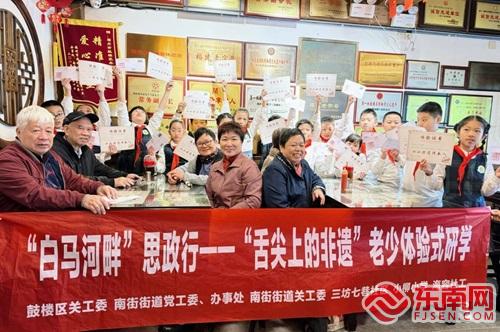 东南网12月1日讯(本网记者 朱琳 通讯员 林鹏群)11月30日上午,鼓楼区关工委、南街街道党工委、办事处、南街街道关工委、海容社工、三坊七巷社区关工委、小柳小学等单位共同开展“白马河畔”思政行——“舌尖上的非遗”老少体验式研学活动。此次活动以探索内河文化为切入点,深入挖掘非遗美食背后的故事,通过思政研学的方式促进老少交流,共同传承和弘扬传统文化。 ![]() 活动当天,红领巾讲解员何泽坤担任开场主持,他详细介绍了活动的背景、目的和行程安排,为本次研学之旅拉开了序幕。活动中,林国山“五老”关爱工作室的成员李林洲老师等6位老同志受邀参与。在白马河畔,李老师结合内河文化,生动地讲述了闽菜饮食习俗、传统节日故事及文化意义,特别是对内河沿岸福州美食的历史渊源进行了详细介绍。 ![]() 随后,一场与内河水生态文化和 “舌尖上的非遗” 相关的知识问答竞赛在河边展开。同学们分成小组积极参与,争相抢答,现场气氛热烈。