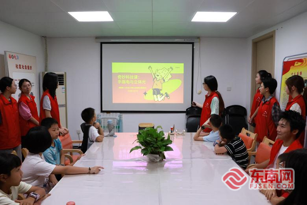 科普分享。小柳社区供图 活动当天,大学生志愿者通过PPT讲解发电机与光的反射相关小知识并结合生动的图片和有趣的视频,让小朋友们更直观地了解这些科学原理。小朋友们都听得十分认真,不时提出自己的疑问,志愿者们也耐心细致地进行解答。