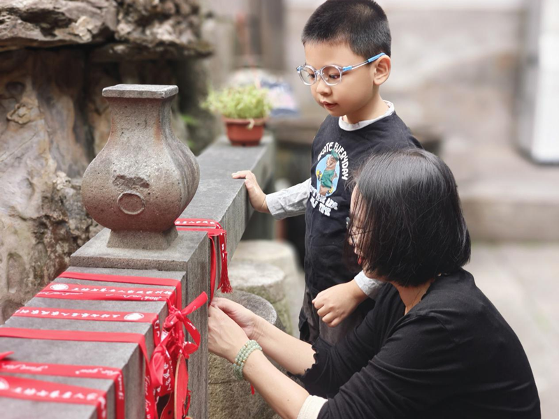 亲自共同写下心愿。南街街道供图 家长与孩子们齐聚一堂,在“心愿墙”前驻足书写,一笔一画间,是“勤俭持家”的叮嘱,是“知书达理”的期盼,更是每个家庭最朴素也最动人的传承。孩子们将纯真的心愿跃然于卡片之上,再亲手用红丝带将其系在半月池边,那随风摇曳的红色,宛如一个个跳动着的、对未来的美好期盼。