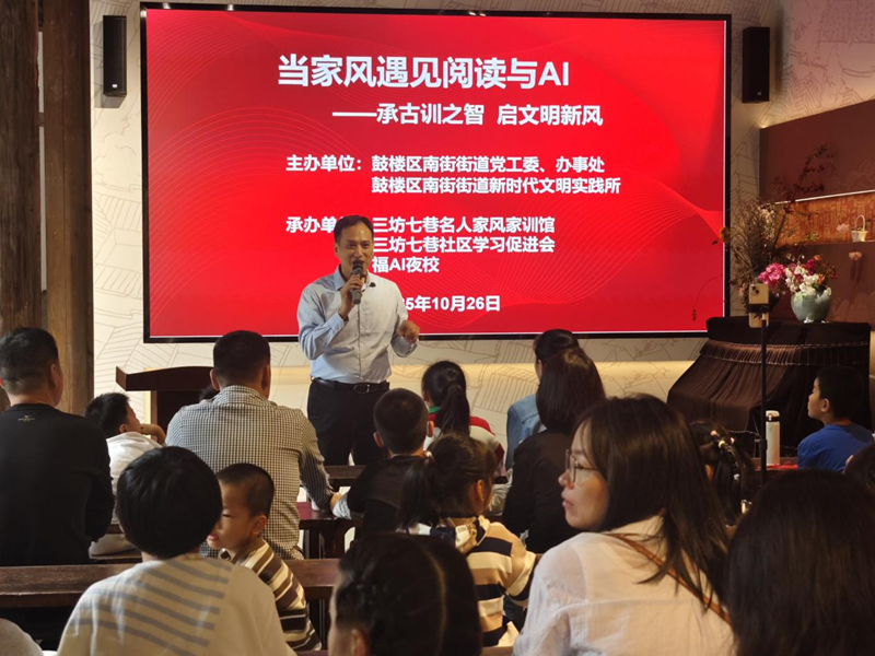 东南网10月27日讯(本网记者 陈巧玲 通讯员 林鹏群)秋意渐浓,书香正暖。10月26日上午,由鼓楼区南街街道党工委、办事处、南街街道新时代文明实践所主办的“当家风遇见阅读与AI”读书月特别活动在三坊七巷名人家风家训馆温情启幕。