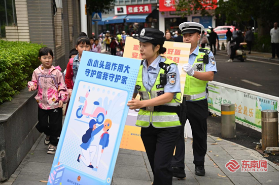 东南网10月28日讯(本网记者 朱琳 通讯员 戴涛)近日,为切实守护学生出行安全,有效防范校园周边电动车交通事故,福州市公安局鼓东派出所联合交警部门,在校园周边广泛开展头盔佩戴专项宣传,推动家长与学生养成正确佩戴头盔的习惯,切实提升头盔佩戴率,筑牢家校往返途中的安全防线。
