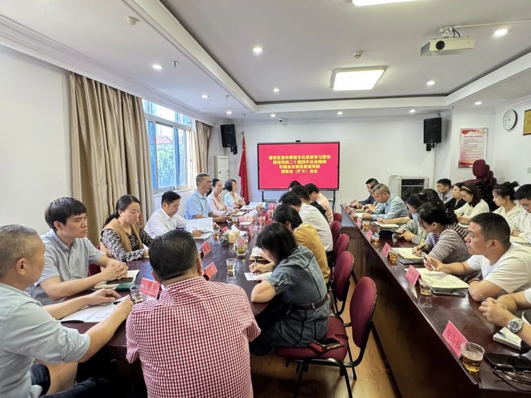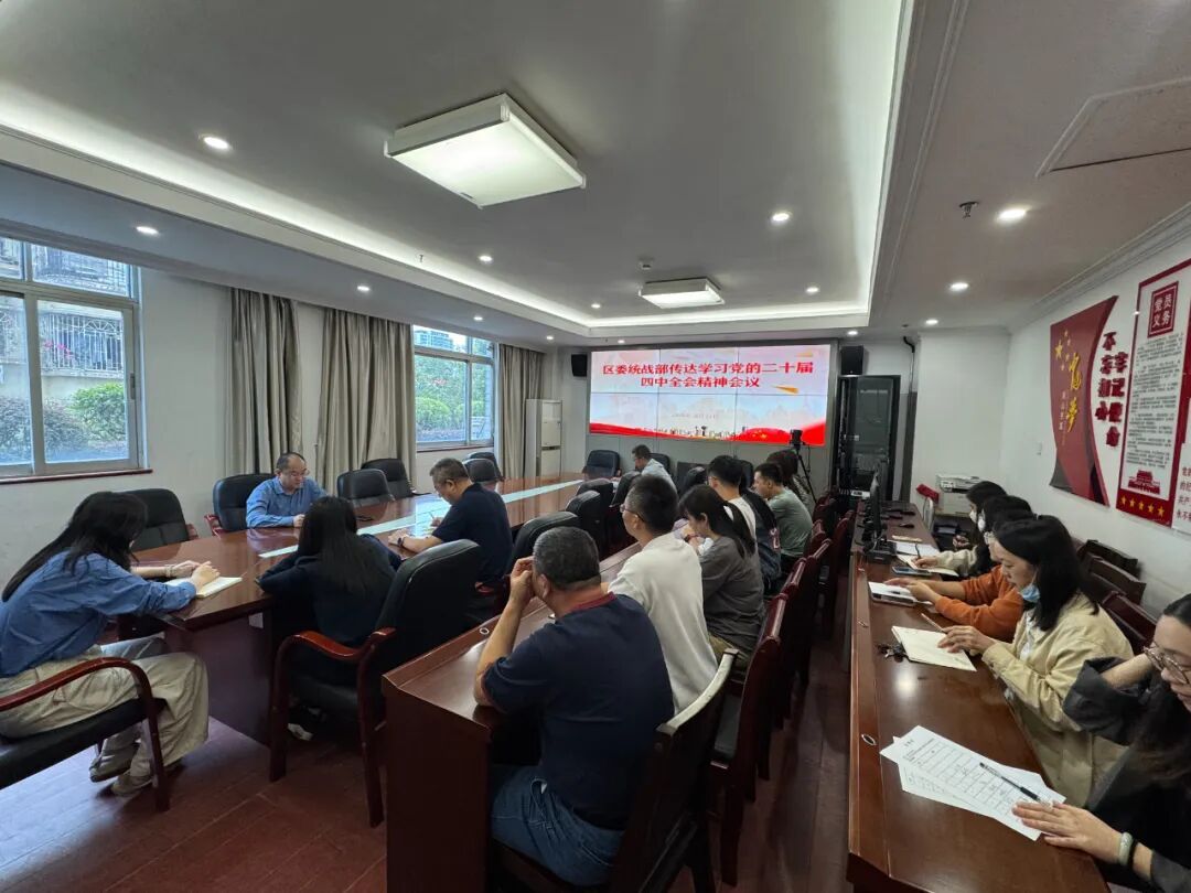 10月25日上午,区宣传思想文化系统召开学习宣传贯彻党的二十届四中全会精神专题会议暨区委宣传部部务会(扩大)会议,传达党的二十届四中全会精神及省、市、区各级相关会议精神。会议强调,学习好贯彻好全会精神,是当前和今后一个时期全党全国的重大政治任务,全区宣传思想文化系统要鼓浓学习氛围,全面准确领会党的二十届四中全会精神实质;要营造宣传声势,扎实推动党的二十届四中全会精神深入人心;要完善落实措施,坚决贯彻党的二十届四中全会重大决策部署。 区委统战部