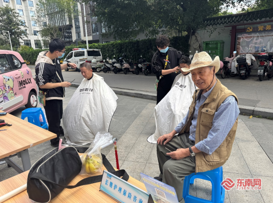 为老人义剪。柳河社区供图 此外,社区招募的优秀义剪团队为现场老人裁剪出满意的发型。活动结束后,志愿者陆续进行入户慰问,送上太平蛋和线面让老人们在重阳节感受到社区大家庭的温暖与牵挂。