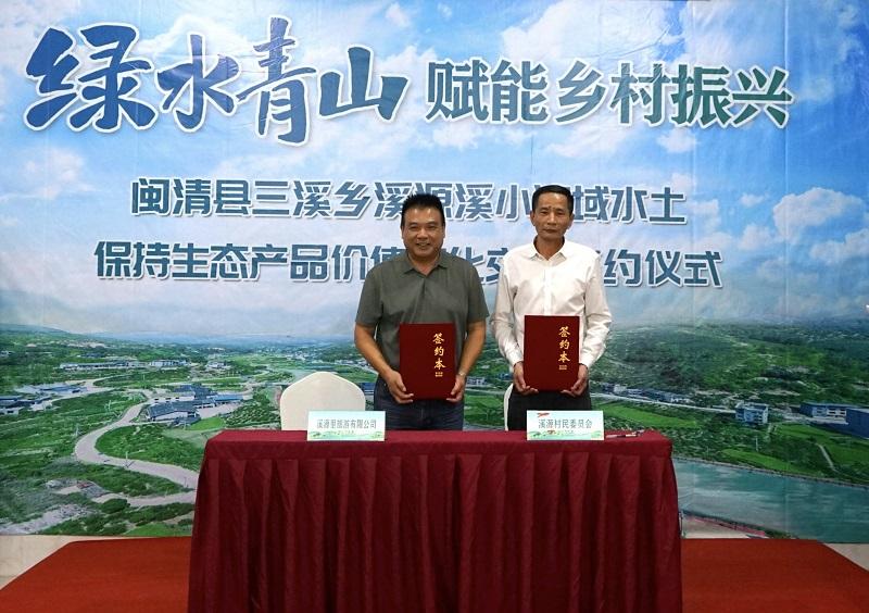 11月7日,两岸融合水土保持生态产品价值转化交易在闽清县三溪乡正式签约,系全国首单。福建省水利厅水土保持试验站副总工杨舜成,福州市水利局局长张帆,福州市水利局副局长林松宝,闽清县政协党组副书记、二级调研员林以銮等领导出席活动。签约仪式上发布了《闽清县三溪乡溪源溪小流域水土保持生态产品价值核算报告》。该项目委托福州大学数字中国研究院(福建)开展监测、核算工作,采用遥感驱动山地当量因子法(RS-MEF)实施评估。此次划区交易金额为161.6万元,溪源村村民委员会作为出让方,与闽清溪源里旅游有限公司签订协议。这笔交易资金将专项用于水土保持功能的巩固提升以及村民创收,受益村民2600余人,并带动130名村民实现“家门口”就业。