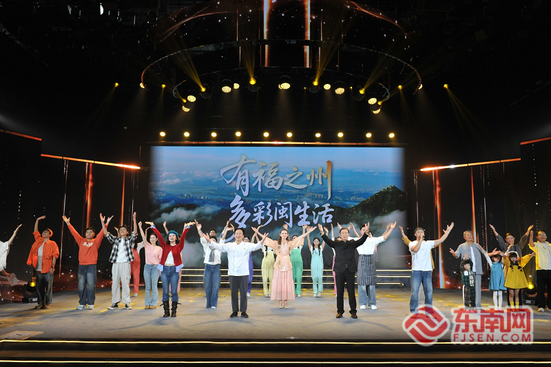 节目现场。 线下艺术作品展演则是对“现代闽生活72式”进行立体化艺术升华。节目总导演介绍道:“我们的核心创意在于‘内容的艺术再造’。我们将短视频里的真实人物、动人故事和城市意象,通过舞台戏剧、舞蹈、音乐和数字视觉进行升华,让线上传播的‘广度’与线下体验的‘深度’完美结合,打造了一个可感、可触的‘有福之州’。” 艺术作品展演基于真实故事进行深度创作,通过《文化中轴》《诗画闽江》《魅力海滨》等三大篇章层层递进,勾勒出福州的独特气质。特别值得一提的是,本次展演特邀在榕生活的乌克兰友人马如参与节目演出。她在剧中以“茉莉花茶”为纽带,生动讲述了将福州传统茶文化分享给乌克兰亲友的真实故事,展现了福州味道的跨洋传递与中外文化的友好交融,为“现代闽生活72式”增添了浓郁的国际色彩与人文温度。