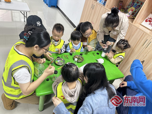 东南网11月16日讯(本网记者 陈巧玲 通讯员 杨晓颖)为普及科学早教理念,丰富社区婴幼儿家庭的文化生活,11月16日上午,南街街道柳河社区携手托育机构开展“探索感官瓶”亲子早教活动。本次活动旨在通过亲手制作和观察感官瓶,激发婴幼儿的感官潜能,促进其认知发展,同时为家长们提供一个交流育儿经验的平台。