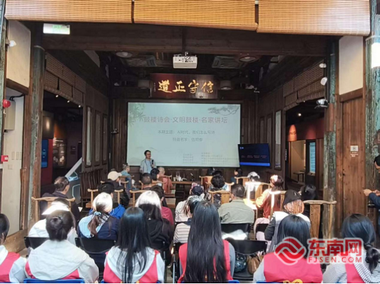 东南网11月16日讯(本网记者 陈巧玲 通讯员 林鹏群)11月16日上午,“鼓楼诗会·名家课堂”活动在三坊七巷衣锦坊守正学堂拉开帷幕,50余位文学爱好者齐聚一堂,共赴诗歌盛宴。活动旨在激发社区居民诗歌创作热情,助力其在AI时代找准创作方向。