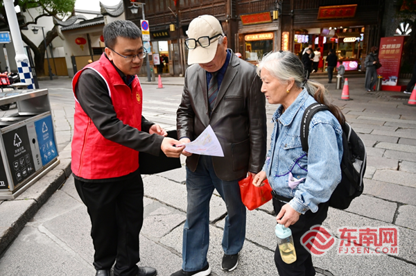 志愿者向游客普及廉政知识。三坊七巷社区供图 活动还设置了廉政教育宣传区,开展平安三率、科学育儿、全民反诈等宣传,通过案例讲解、资料发放等形式,为群众提供多维度指导。本次活动共发放宣传资料200余份,服务群众超过500人次。 三坊七巷社区表示,作为国家5A级旅游景区核心区,未来将持续深化“文明实践+安全保障+廉政教育”模式,通过开展急救培训、建立商户诚信档案等举措,让千年古街焕发文明新活力。 |