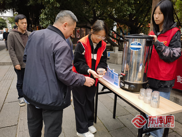 志愿者为游客送上暖心热茶。三坊七巷社区供图 温情服务区同样人气十足。爱心茶摊前,志愿者为环卫工人和游客送上暖心热茶;文明旅游宣传点,工作人员通过生动案例引导游客爱护古厝、有序参观;还有的志愿者则向沿街商户发放宣传册,倡导诚信经营,共同维护街区形象。