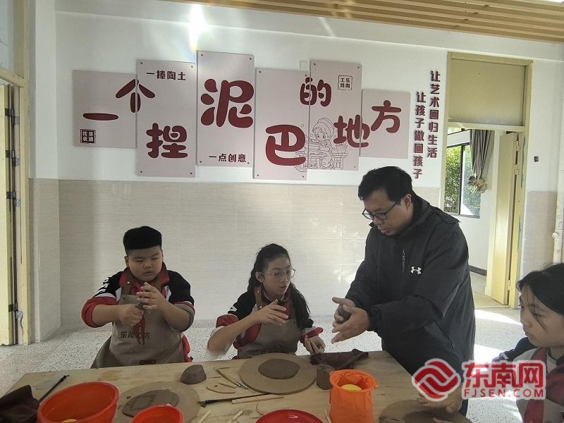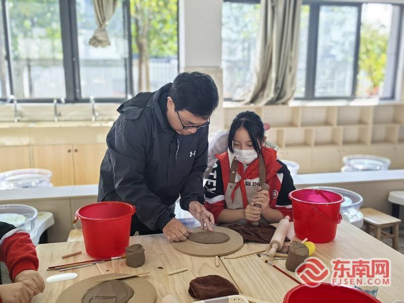怀安窑非遗代表性传承人刘经锋指导学生制作陶艺。主办方供图 活动现场,怀安窑非遗代表性传承人刘经锋老师亲临陶艺室,为学生们带来了一堂生动的陶艺课。在刘老师的悉心指导下,同学们亲手体验陶艺制作的基本技法,感受泥土在指尖的触感与变化。课堂气氛热烈,互动频繁,同学们在动手实践中领略传统手工艺的独特魅力。