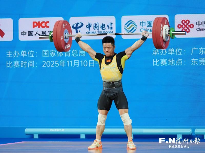 李发彬夺冠。记者 陈君沂 摄 这份亮眼的成绩单上,既有李发彬、李雯雯等奥运冠军的压阵担当,更有檀儒凯、焦恩祺、施嘉颖等小将敢闯敢试的拓荒勇气。这是福州健儿对“更高、更快、更强、更团结”体育精神的不懈追求,也是福州市竞技体育体系持续优化的生动体现。 新老携手 赛场逐梦 南海潮涌,湾区筑梦。第十五届全运会于2025年11月9日至21日在粤港澳大湾区盛大举行,福州运动员以老将坚守与新锐突围交相辉映的昂扬姿态,在武术、击剑、羽毛球、射击、田径、举重等多个赛场掀起“闽旋风”。