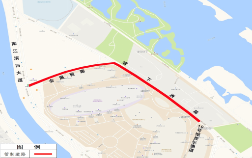 二、赛事终点管制区 2025年12月14日7时30分至赛事结束,会展西路(浦下洲路至南江滨西大道)、浦下洲路(会展西路至会展中心10号馆货运通道口)实行交通管制,禁止车辆(持专用通行证车辆以及周边单位车辆除外)通行。